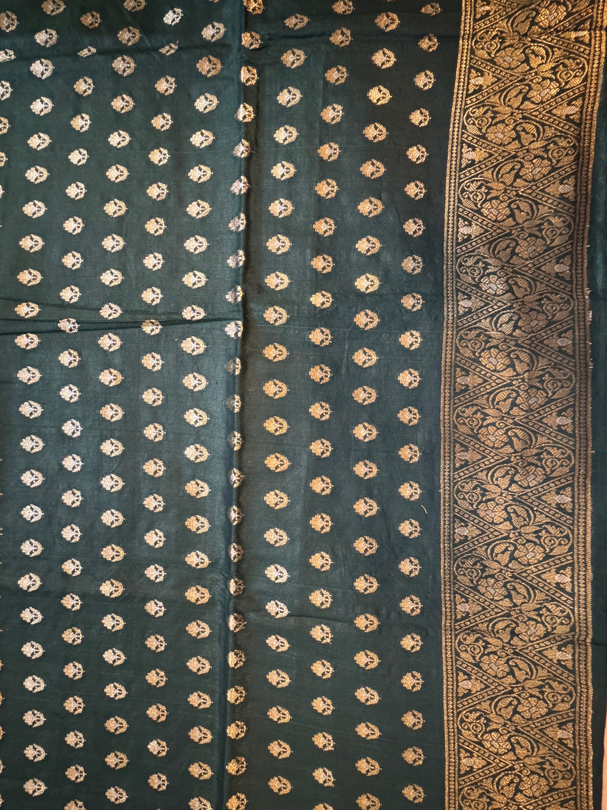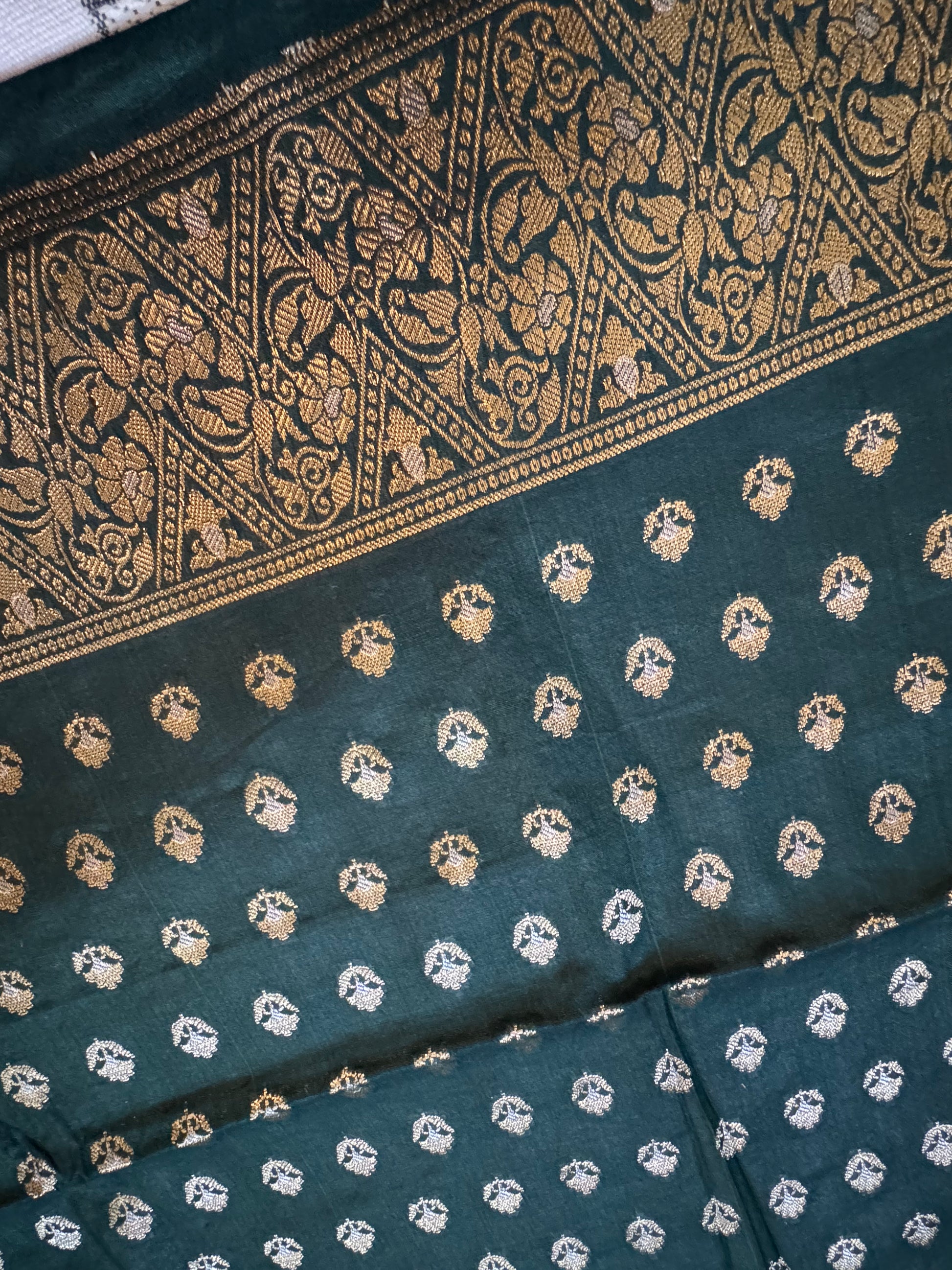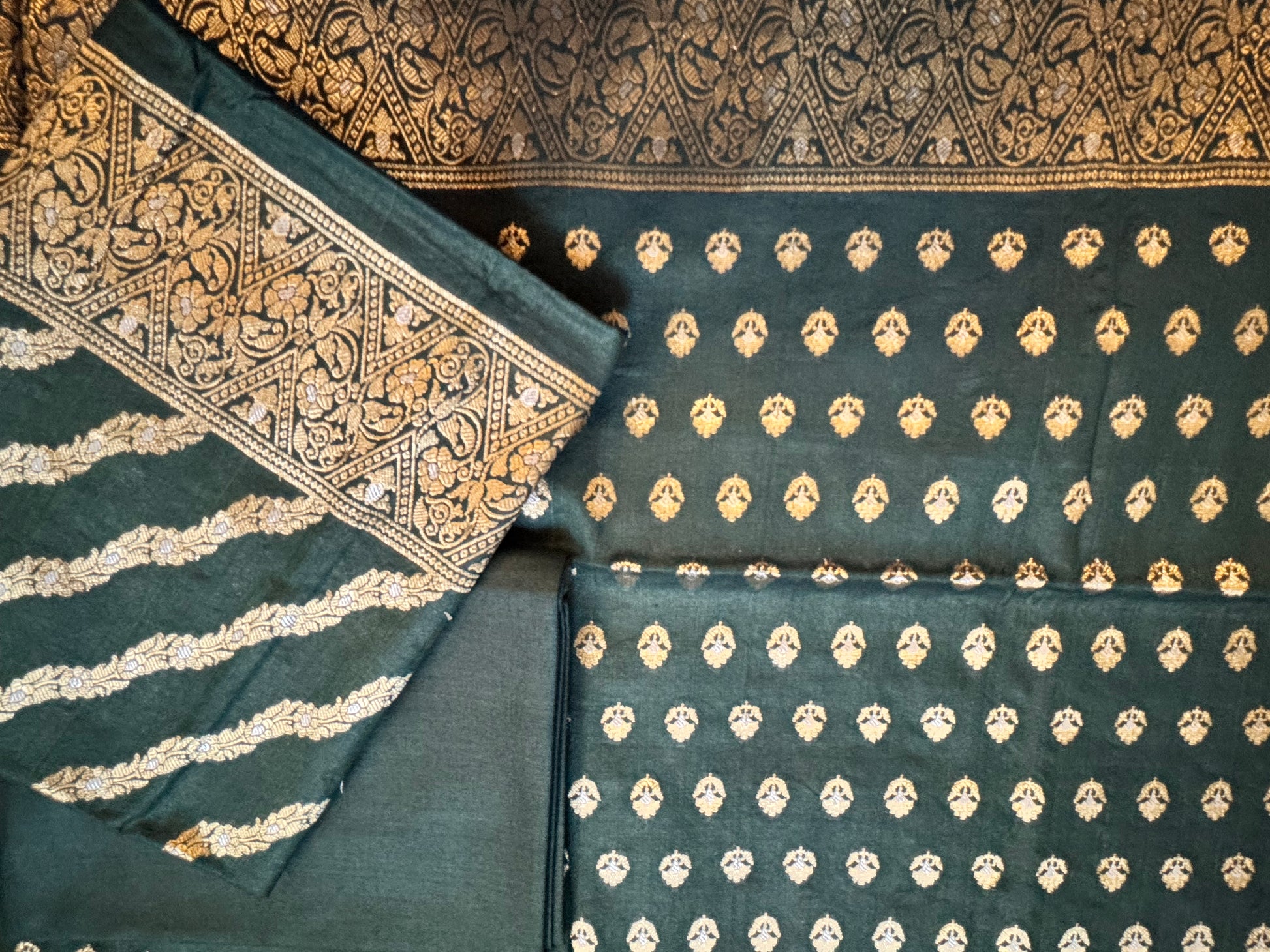 Bottle green Pure mulberry silk Banarasi suit set