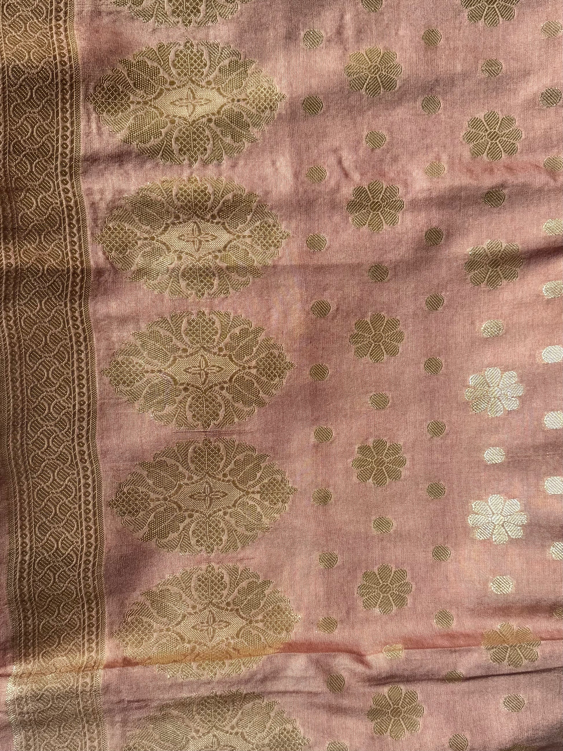 Baby Pink Pure Satin Banarasi Saree with Resham Weaving and Woven Border