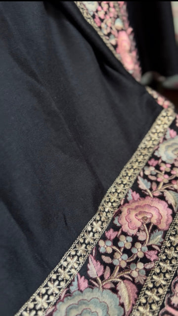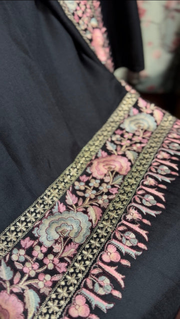 Black Pure Pashmina Sozni Emroidered Kashmiri Shawl