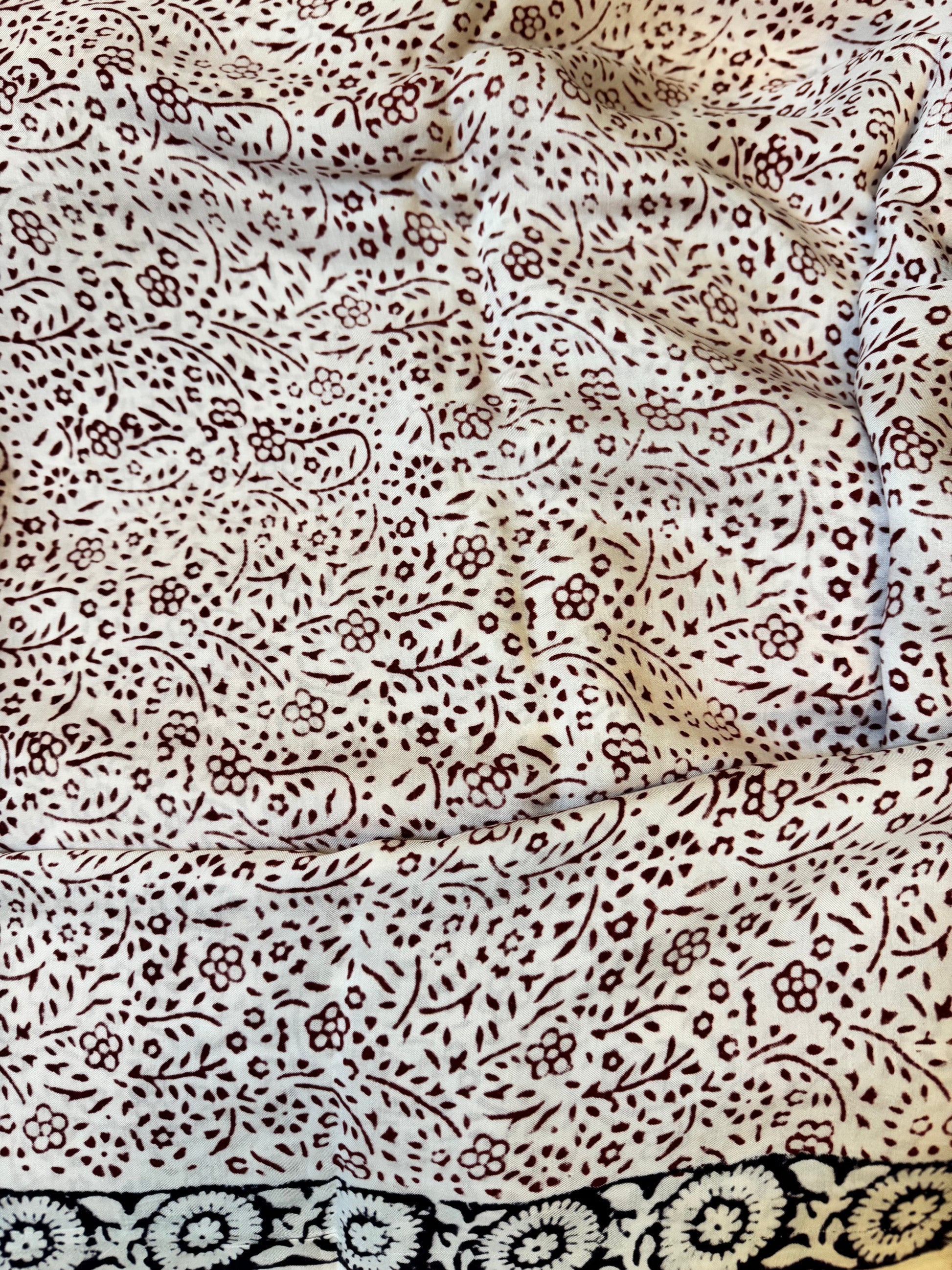 The set comes with a matching hand blocked bottom in the same Bagru print, keeping the look cohesive and well balanced. The dupatta is where the detailing really stands out. It features a Lagdi borders on both ends, adding texture and movement without overpowering the suit.